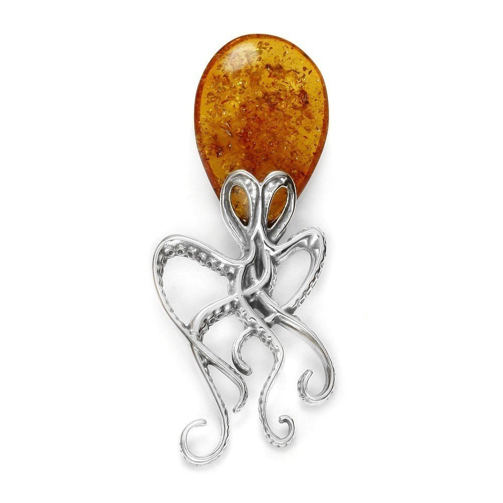 SREBRNY WISIOREK OŚMIORNICA Z BURSZTYNEM