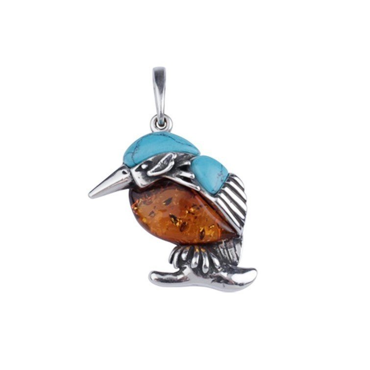 SREBRNY WISIOREK ZIMORODEK Z BURSZTYNEM